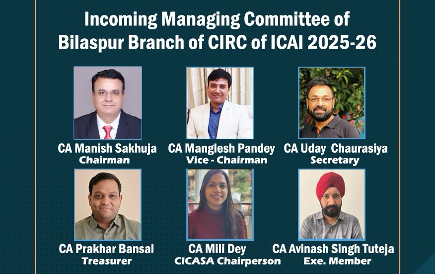 आईसीएआई बिलासपुर में नई कार्यकारिणी समिति का गठन, सीए मनीष सखूजा बने अध्यक्ष