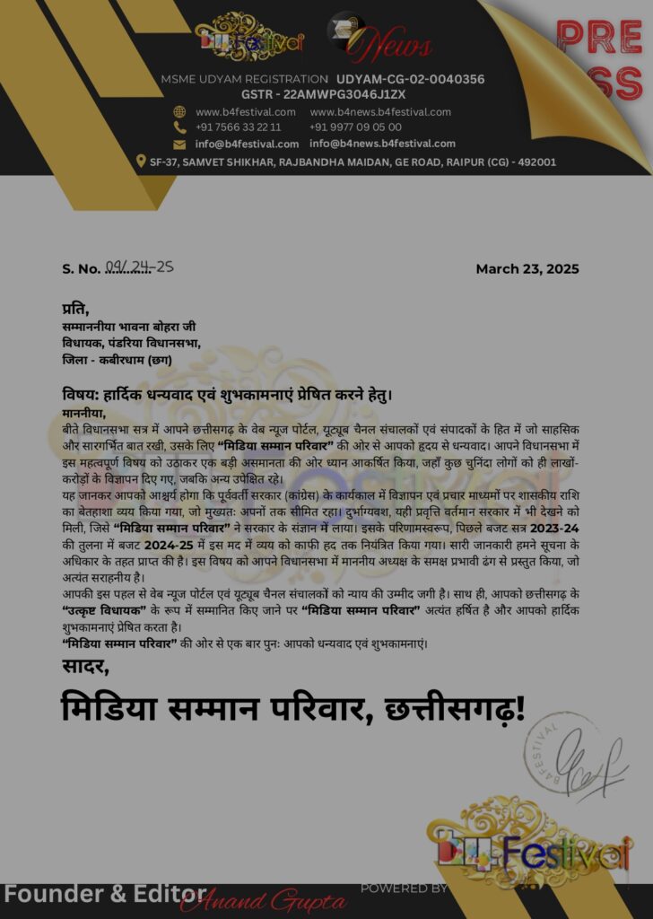 🙏 ‘मिडिया सम्मान परिवार’ और B4Festival ने जताया आभार!