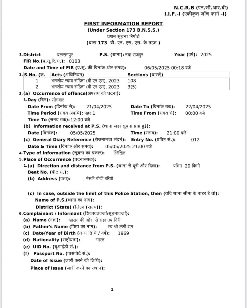 बलरामपुर, 07 मई 2025 – विनोद अग्रवाल उर्फ मग्गू सेठ, जिन पर लंबे समय से आपराधिक गतिविधियों और जमीन हड़पने के गंभीर आरोप लगते रहे हैं, अभी भी पुलिस की पकड़ से बाहर हैं। 06 मई को थाना राजपुर में दर्ज नई FIR (क्रमांक: 0103) और उनके 15 वर्षों के आपराधिक इतिहास के बावजूद अब तक गिरफ्तारी न होना जनमानस में गहरी चिंता और आक्रोश का कारण बना है।