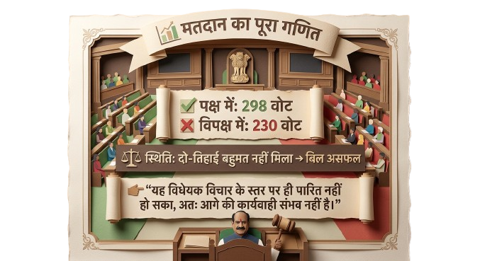 • тЭМ рд╡рд┐рдкрдХреНрд╖ рдореЗрдВ: 230 рд╡реЛрдЯ